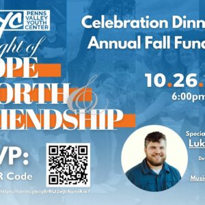 The Penns Valley Youth Center focuses on meeting the needs of students and families in Penns Valley by providing Hope, Worth, and Friendship. Our mission is changing the trajectory of the lives of our community, one student, one family at a time. As we have grown over 20% from last year’s attendance, PVYC continues the work of making a difference with ...